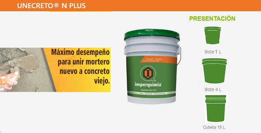 UNECRETOⓇ N PLUS es una emulsión acuosa, formulada a base de polímeros sintéticos de alta calidad y productos químicos que al ser aplicada forma una membrana con excelente adherencia al concreto.